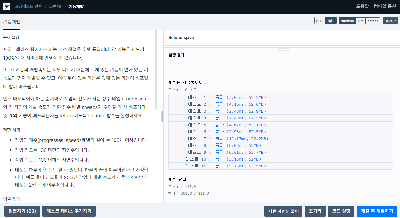 * https://programmers.co.kr/learn/courses/30/lessons/42586