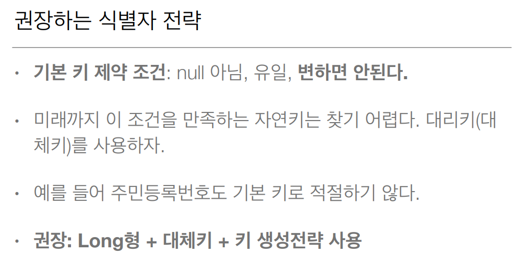 - 기본 키 생성을 데이터베이스에 위임