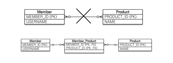 - 연결 테이블용 엔티티 추가(흔히 N:M에서 테이블 하나가 더 생성되는 원리)