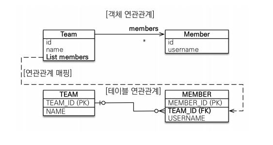 - 객체와 테이블 차이 때문에 반대편 테이블의 외래 키를 관리하는 특이한 구조