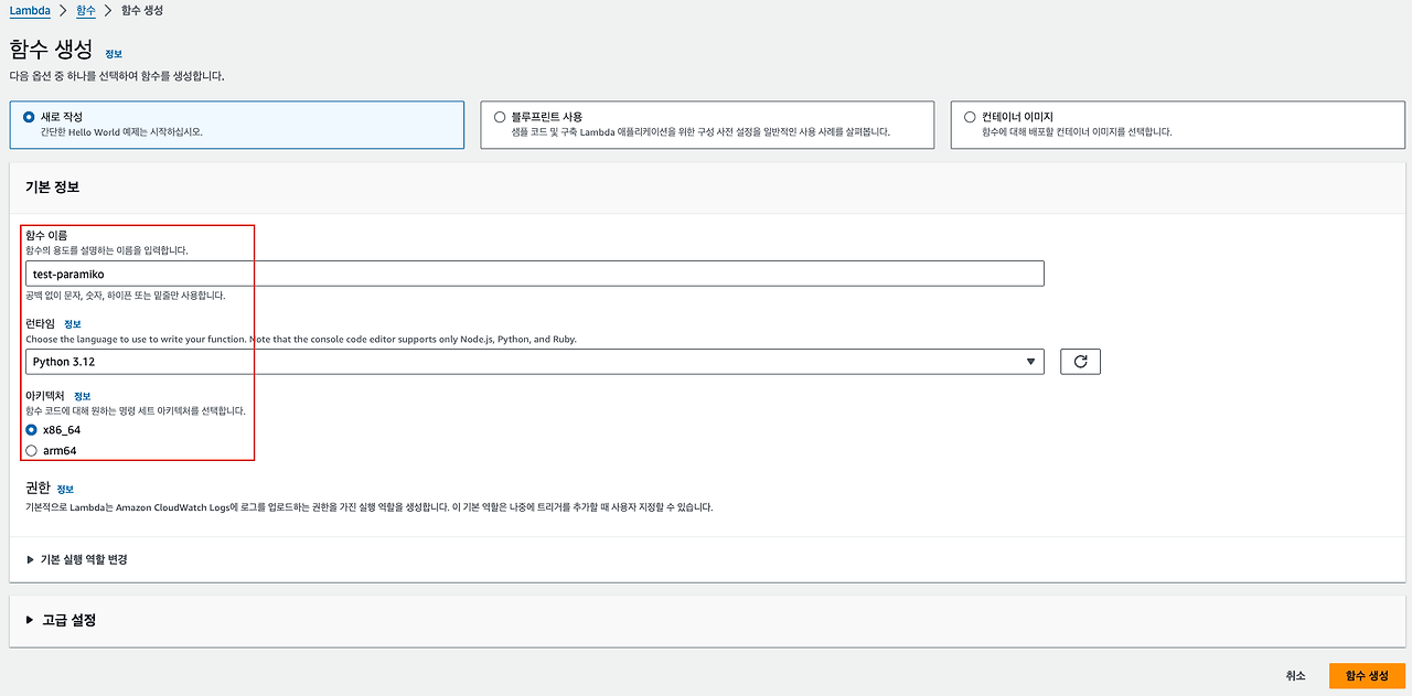 AWS Lambda -> 함수 생성