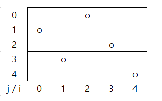 - 열에 해당하는 배열에는 몇 번째 자리에 퀸이 배치됐는지 표현